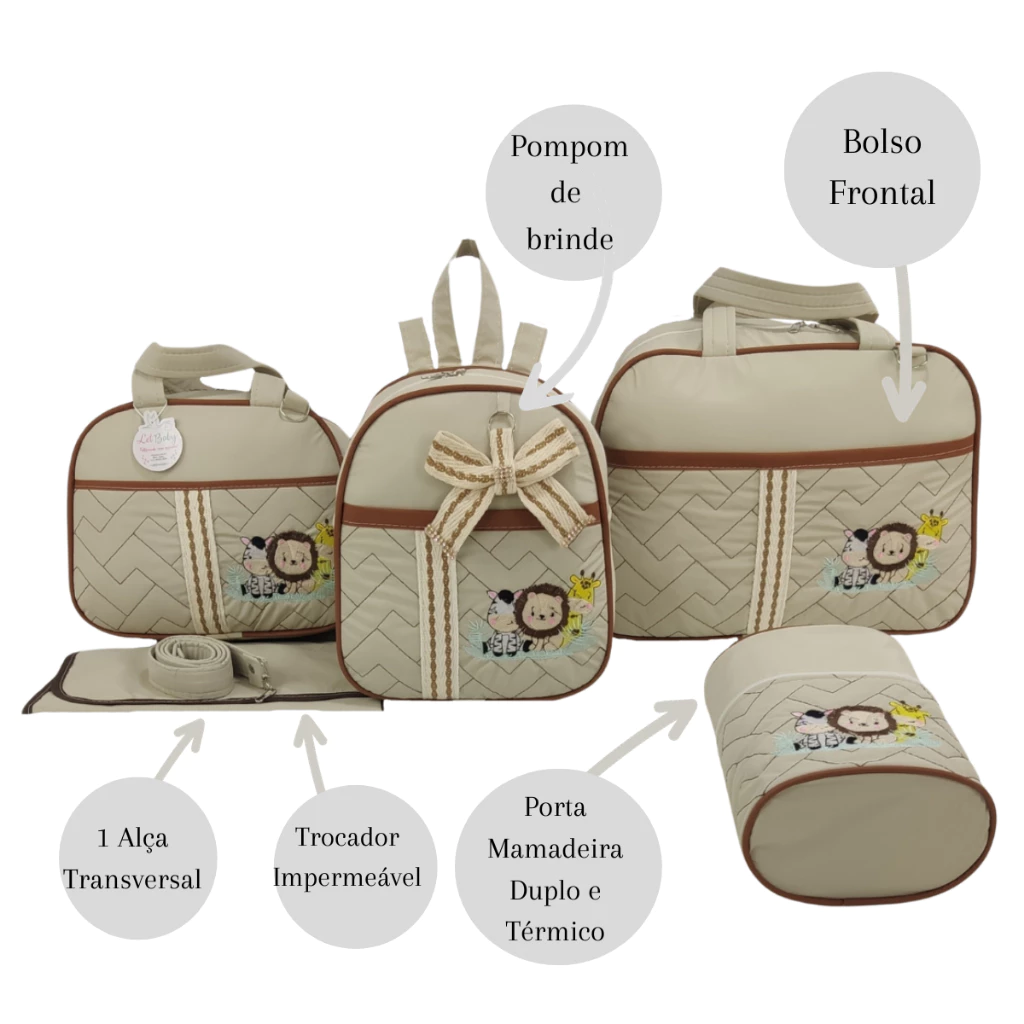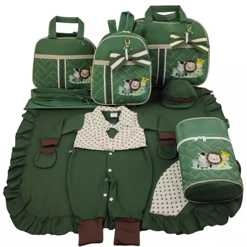 Ter um kit completo evita a necessidade de comprar peças separadas. O Kit Bolsa Maternidade Safari 5 Peças atende às principais demandas da maternidade em um único conjunto, oferecendo uma solução prática para quem está montando o enxoval.